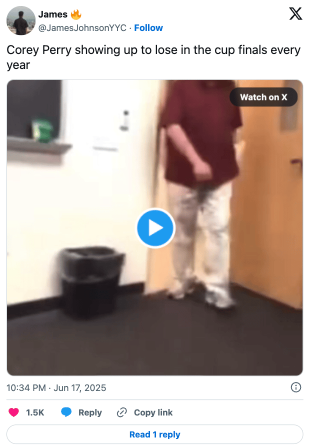 On an even more somber note, Edmonton’s Corey Perry has played in the Stanley Cup Finals in five of the past six seasons and has been on the losing end of every single one. Pour one out for the guy.
