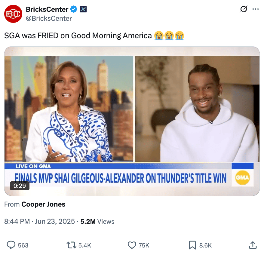 🇨🇦 Canadians are built for the finals. Ontario native Shai Gilgeous-Alexander bagged the Finals MVP this week, joining fellow Canadians Freddie Freeman (World Series MVP last season) and Sam Bennett (Stanley Cup MVP this year).