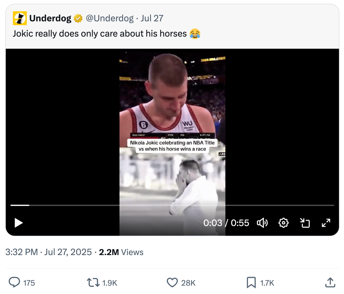 Nikola Jokic really doesn’t care about anything but his horses. The Nuggets star was brought to tears after his prized steed won a race in Serbia, a reaction that is 10 times funnier when you compare it to his celebration after winning the NBA championship.