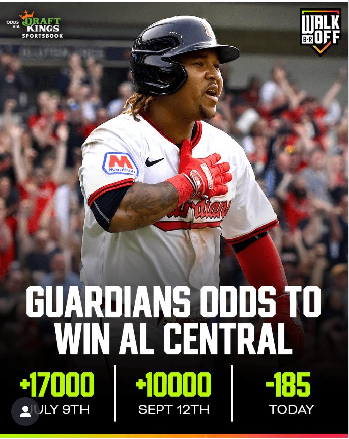 Detroit’s choke job could end up being the worst in baseball history. Just two weeks ago, they had a 99.9% chance to win the AL Central. Today, the Guardians hold a one-game lead in the division.
