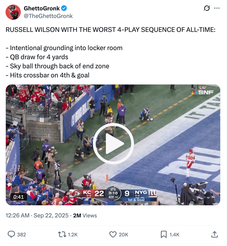 💔 The Giants-Russell Wilson era came to an ugly end. The veteran QB is being benched in favour of rookie Jaxon Dart. It’s the kind of demotion that tends to happen when you haven’t won a football game since December of last year.