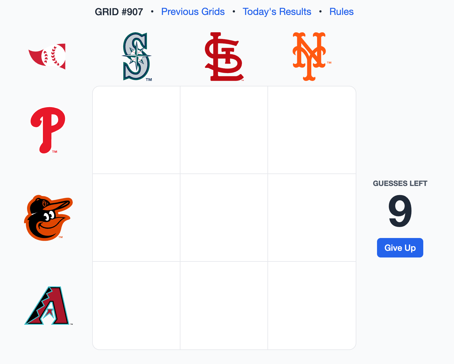 Select a player for each cell that matches the criteria for that cell’s row and column.You have nine guesses to fill out the grid.