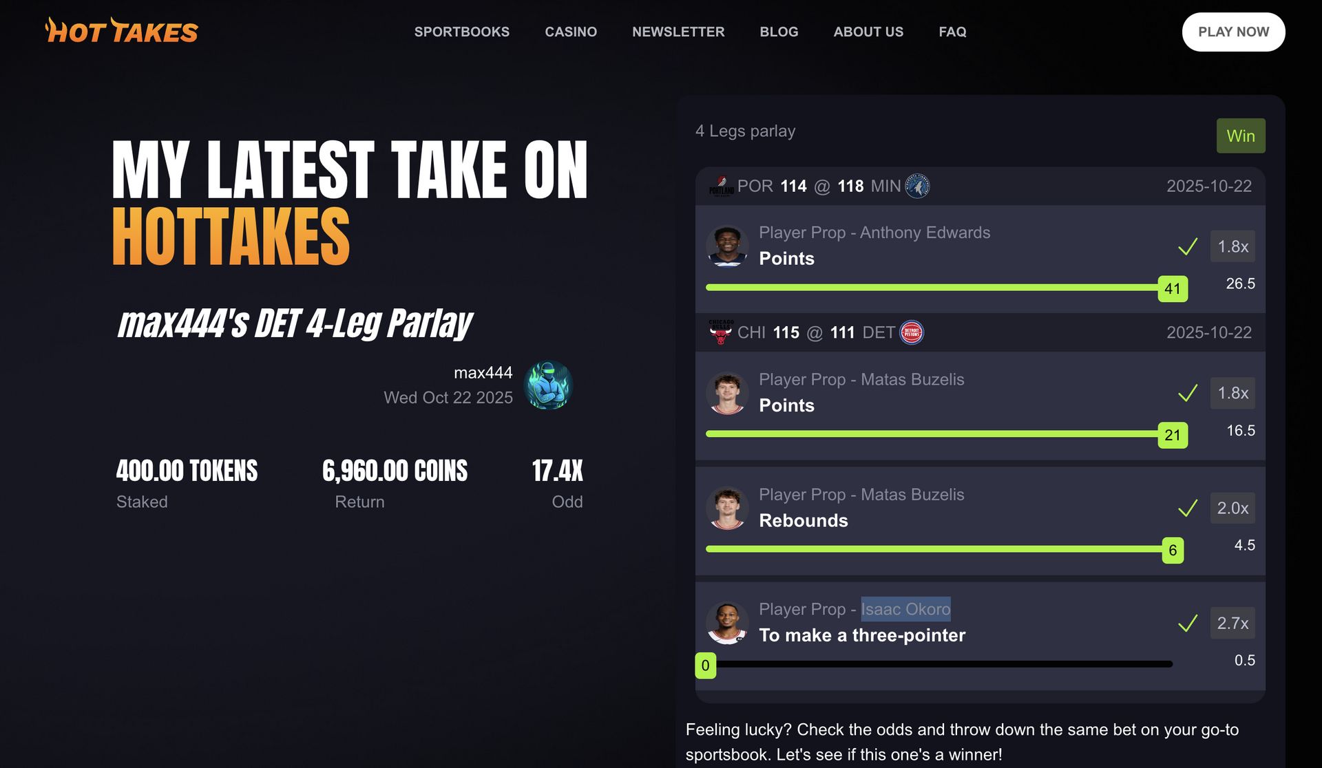 Shoutout @max444 for kicking off the NBA season with a 17x win, banking on four opening night props.