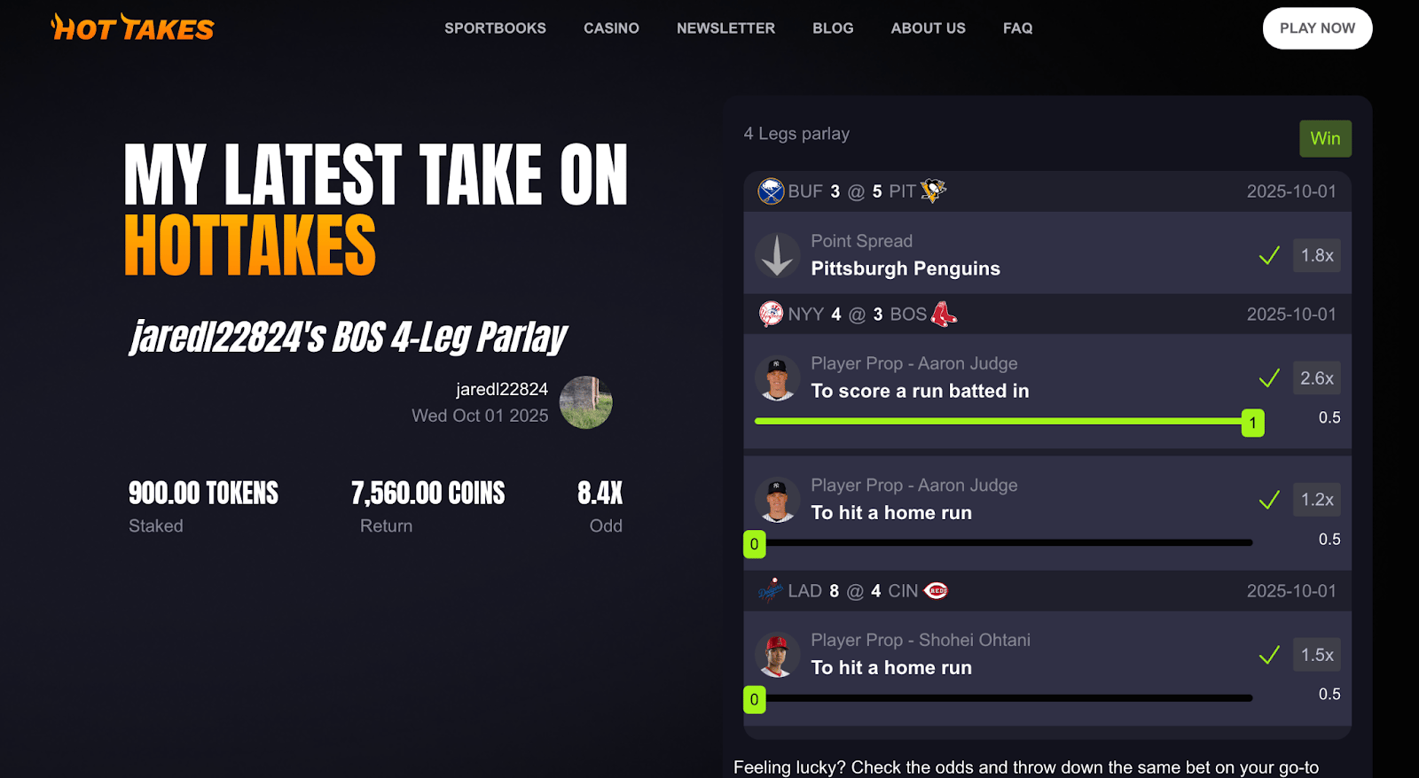@jardedl22824 hit our biggest parlay of the week, cashing in on a little playoff baseball and pre-season hockey. Gutty call to take Shohei not to homer the night after he went deep twice. Respect.