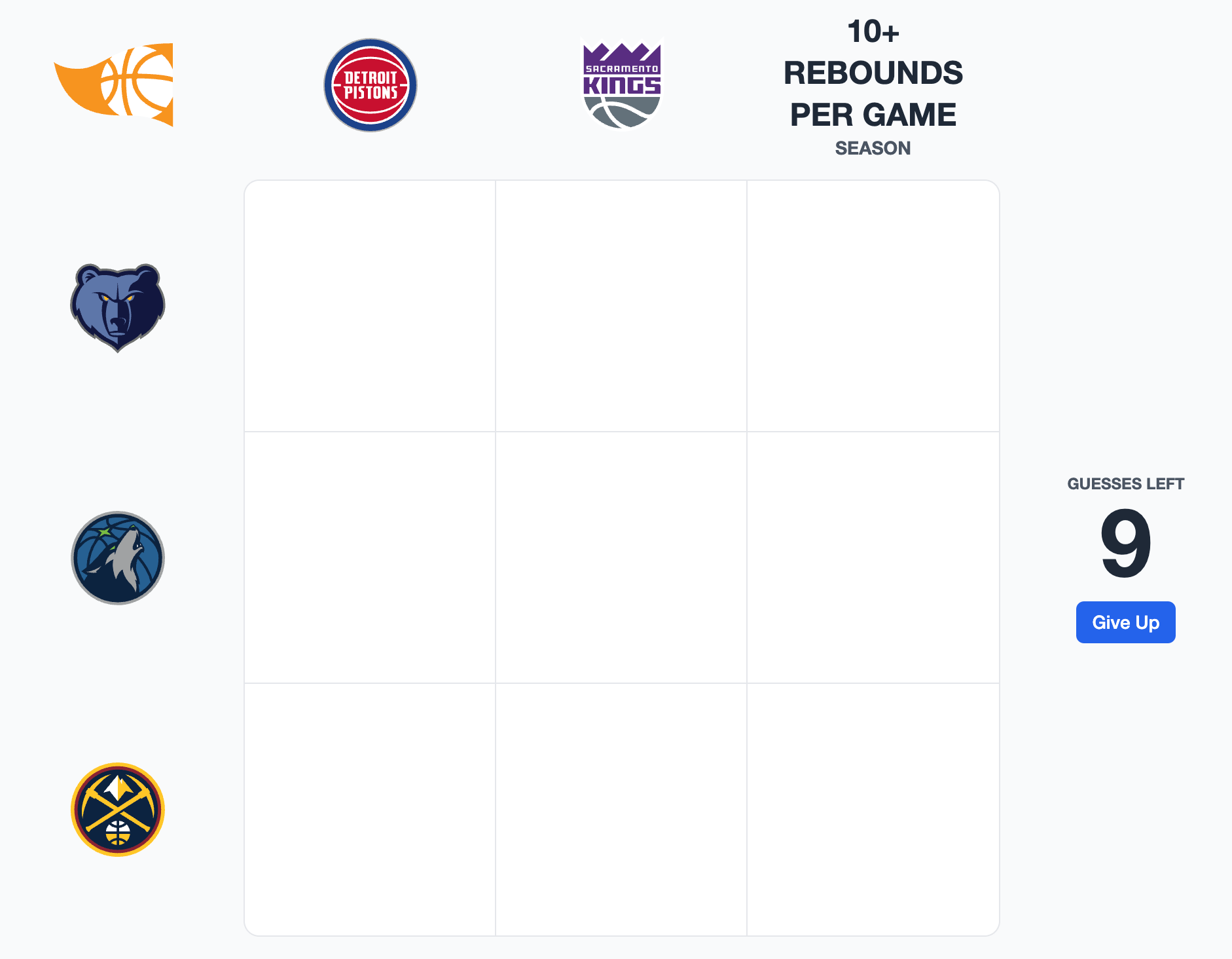 Select a player for each cell that matches the criteria for that cell’s row and column.You have nine guesses to fill out the grid.