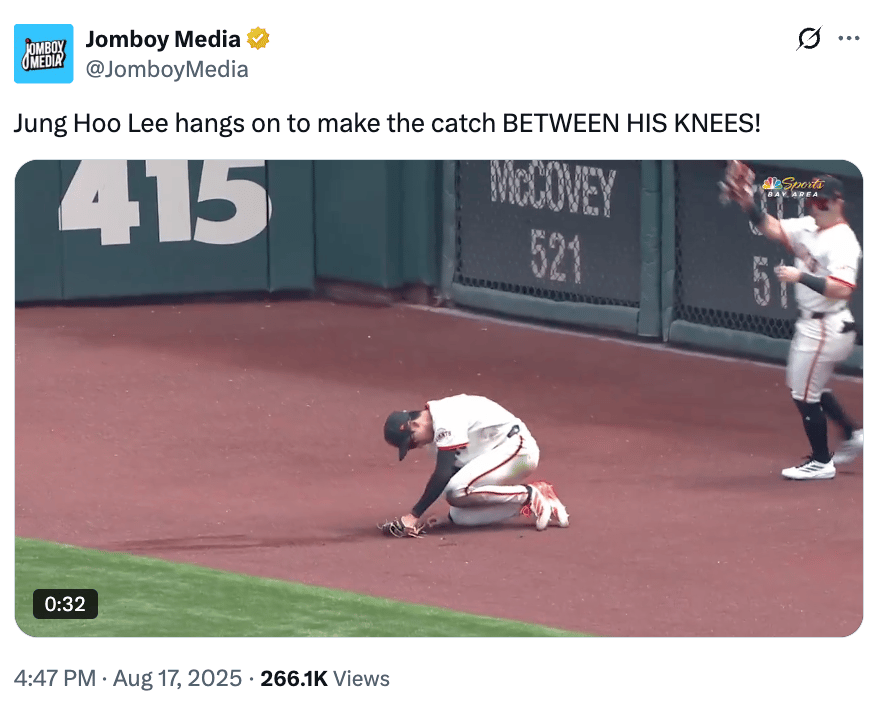 There’s a lot of (ugly) ways to catch a baseball… and the Giants and Rockies just proved it. The Rockies closer somehow held on to the ball after soaking a linebacker level collision from his teammate, while Giants outfielder Jung Ho Lee managed to catch a fly ball between his kneecaps.