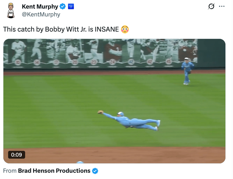 We’ve got a play of the year candidate courtesy of Bobby Witt Jr. Nothing this guy does anymore is surprising, but this play is absurd. Send this to anyone who’s still in the “baseball players aren’t athletes” camp.