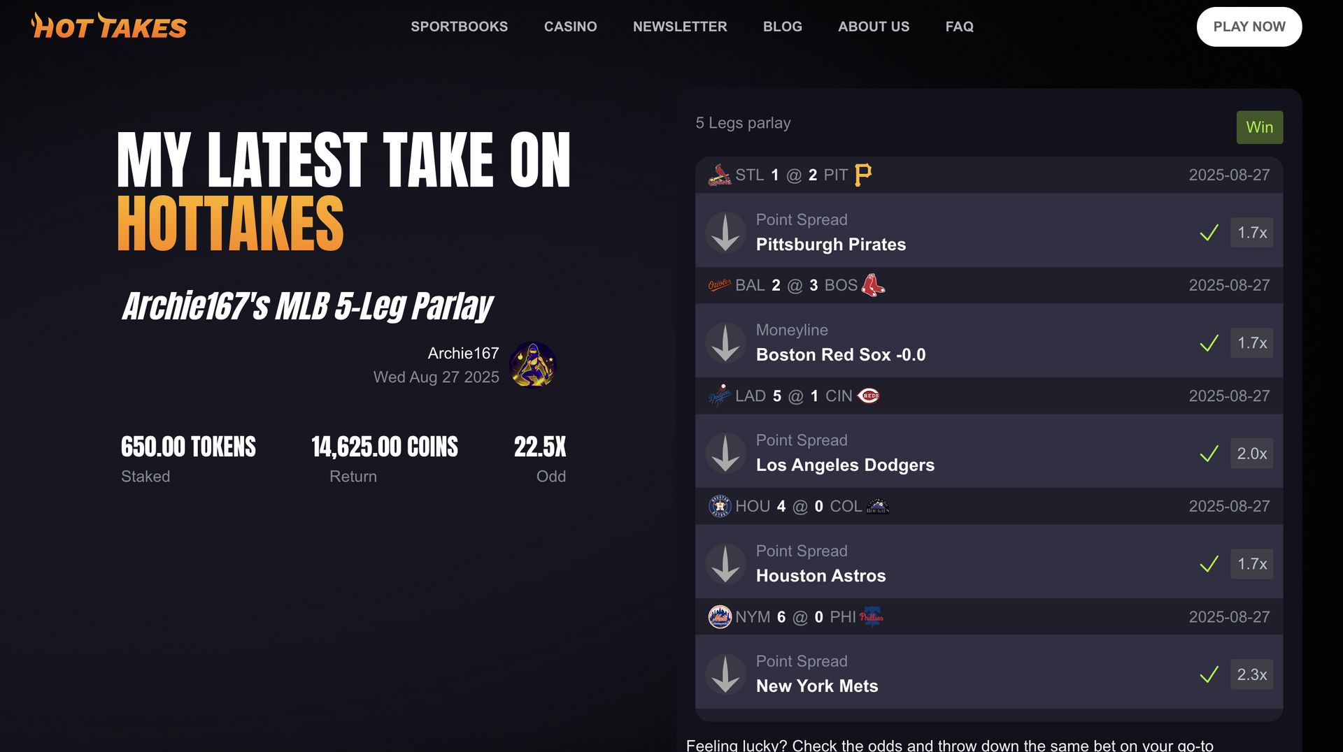 @Archie167 proved this week that, sometimes, simple is better. No hit totals, no strikeout overs, just straight up spreads and moneylines. There’s no way they weren’t sweating out that Red Sox game on Wednesday night.