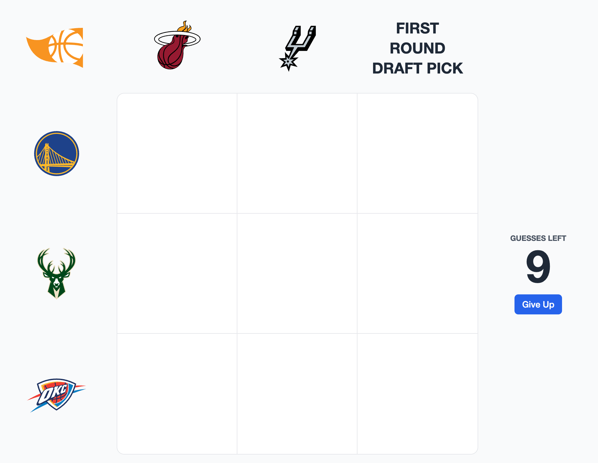 Select a player for each cell that matches the criteria for that cellās row and column.You have nine guesses to fill out the grid.